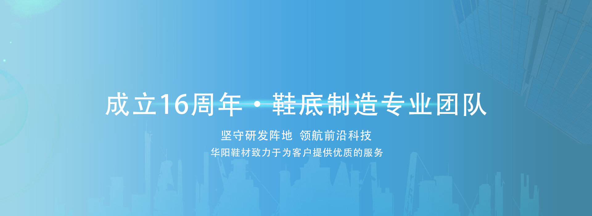 華陽鞋材于2004年成立,傳承晉江傳統(tǒng)工匠精神與現(xiàn)代化工藝技術(shù)完美融合,全面滿足客戶需求,成為國內(nèi)市場(chǎng)上專業(yè)的鞋底制造商之一。多年來,華陽鞋材自主研發(fā)及引進(jìn)最先進(jìn)智能生產(chǎn)設(shè)備,致力于生產(chǎn)EVA一次(IP)成型鞋底、EVA二次(MD)成型鞋底、TPR鞋底、RB(橡膠)鞋底,TPU鞋底及配件及底材組合。